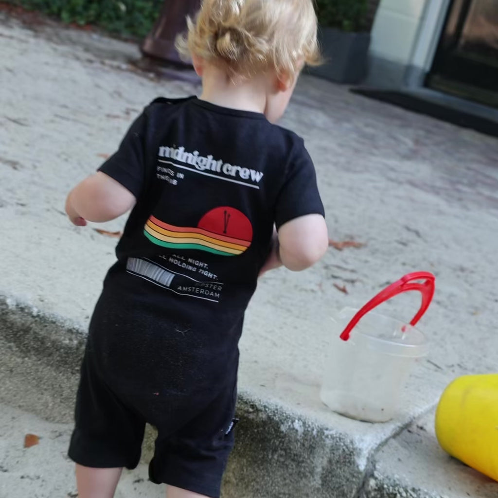 Crafted from a blend of hemp and organic cotton, this tee is naturally gentle on sensitive skin, antibacterial, and built to last through countless adventures. The front-and-back design adds a playful twist, while the eco-friendly fabric makes it a smart choice for the planet.