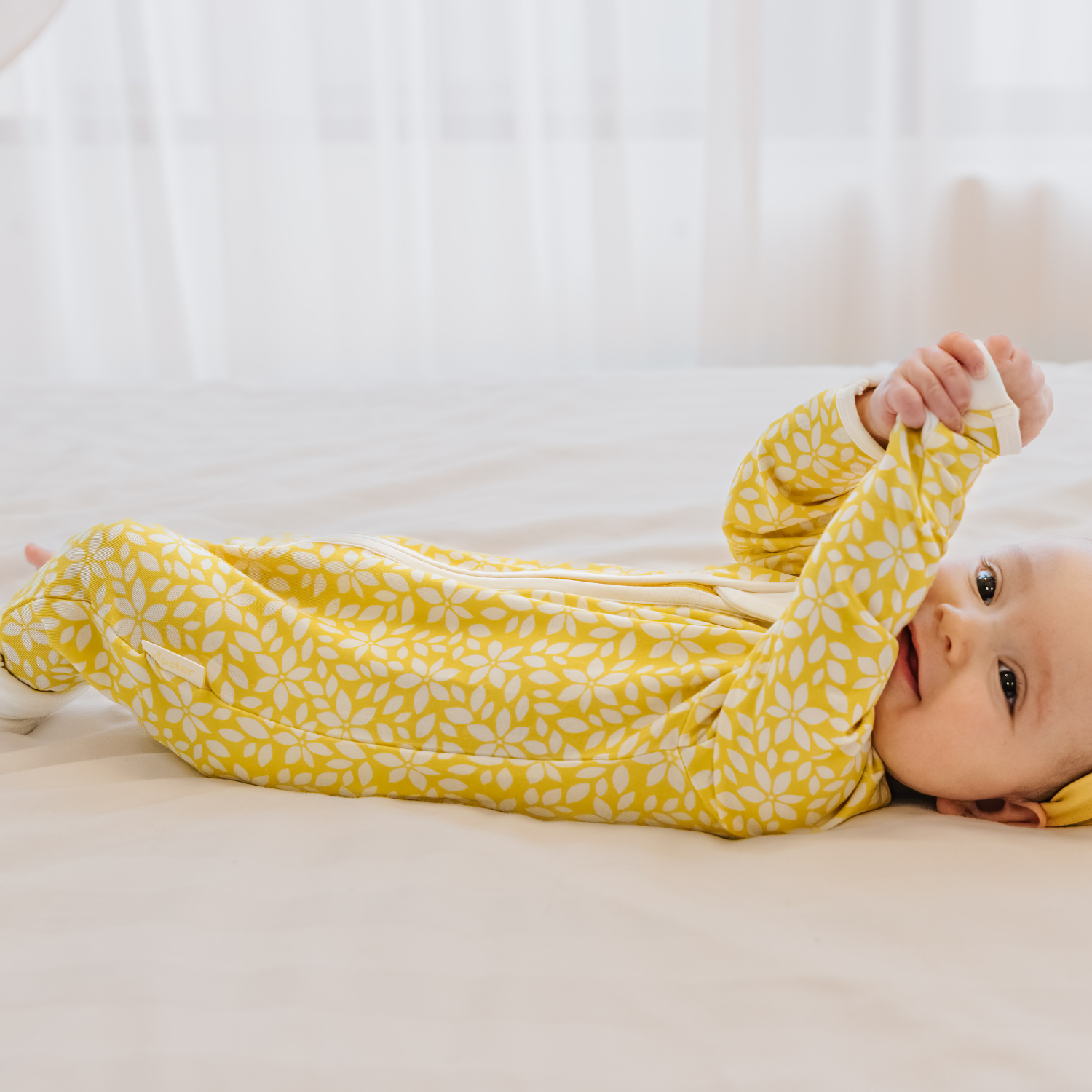 Due to the delicate nature of our luxurious Bamboo fabric, please avoid washing with items that have zippers, buttons, or hardware, as snagging may occur. For best care, wash separately with other baby items.