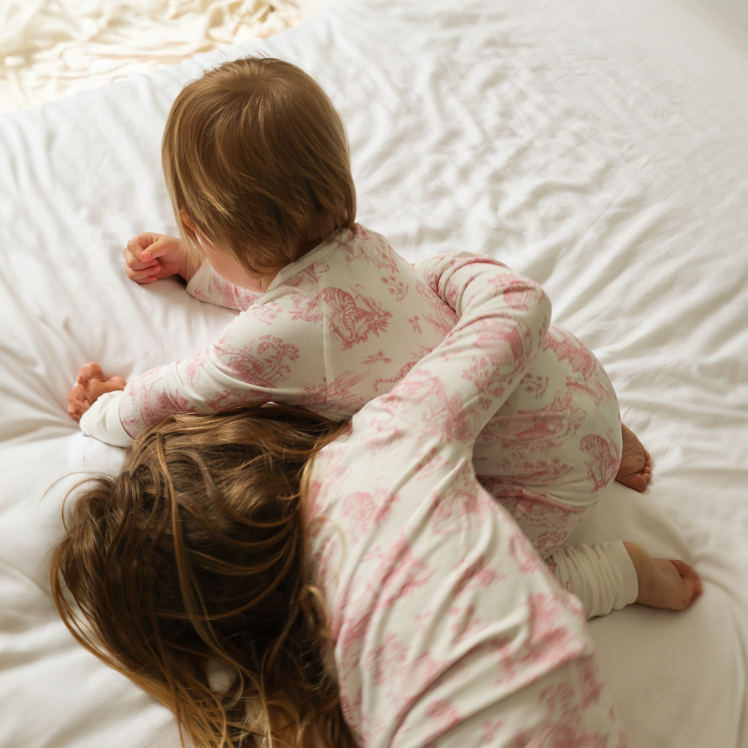 Because softer fabrics like Bamboo are more prone to pilling, laying items flat to dry helps retain their fresh feel. Many moms choose to line dry to maintain texture, preserve color, and extend the life of each piece.