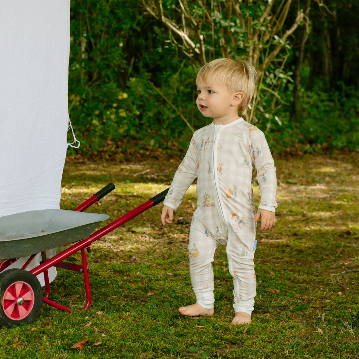 Ten element naszej limitowanej kolekcji Peter Rabbit ™ x Zipster łączy ponadczasowy urok z Zipster praktycznością. Wykonany z super miękkiego i rozciągliwego 95% bambusa i 5% elastanu, jest delikatny dla skóry dziecka, zapewniając mu wygodę przez cały rok, idealny do przytulności w chłodniejsze miesiące i chłodu w cieplejsze.